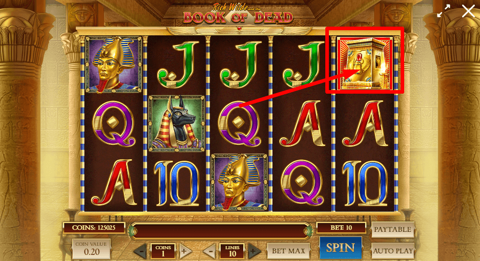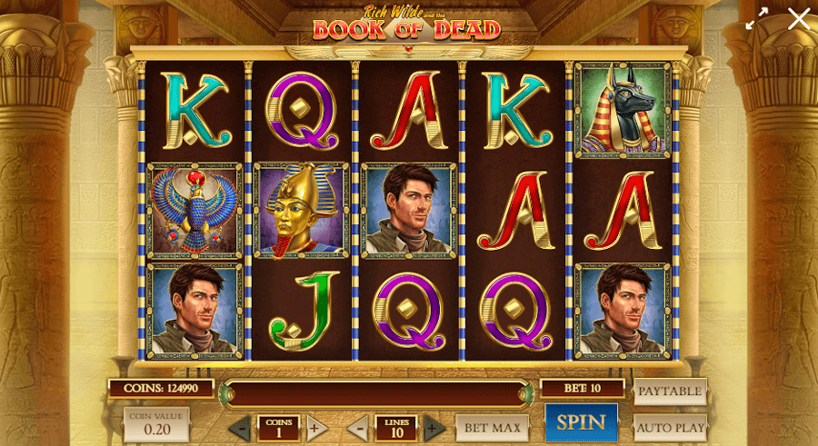 A Book of Dead a már sok játékgépben megjelenő ókori Egyiptomban játszódik, amely nagyszerű kombót alkot a kincsvadász Rich Wilde-al. Rich Wilde egy mára már sokak által ismert karakter, amely a Book of Dead által lett híressé. A királyi mélylila görgőkön A-tól 10-ig terjedő számokat találhatunk, olyan szimbólumokkal fűszerezve, mint például Hórusz a madár isten, Anubisz a sakál isten vagy éppen egy arany Tutanhamon stílusú temetkezési maszk, amelyet valóban a Tutanhamon sírjában talált maszkról mintáztak.