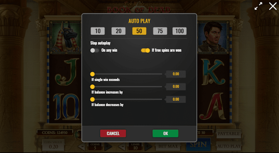 Válaszd ki a számodra legelőnyösebb játékstílust. Akár a játék minden percét kiélvezve, mindig a manuális megpörgetést használod, akár az automatikus pörgetést, a nyeremények ugyanazok. Ettől függetlenül, érdemes lehet a manuális pörgetést választani, hiszen így jobban kiélvezheted a játék által kínált élményeket. Bármely játékstílus legyen is szíved választottja, a Book of Dead garantáltan elszórakoztad téged is.