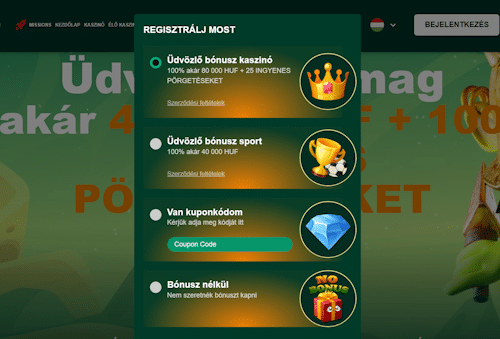 | Kaszinó bónusz | 100%-os befizetési bónusz akár 80 000 HUF-ig, 25 ingyen pörgetéssel |