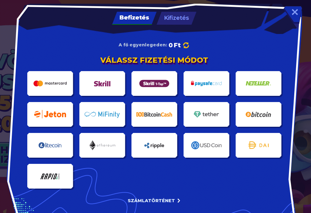 | paysafecard | 5.000 Ft – 350.000 Ft | Azonnali | – | – | – |