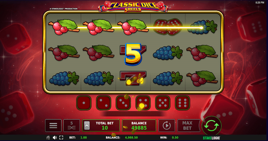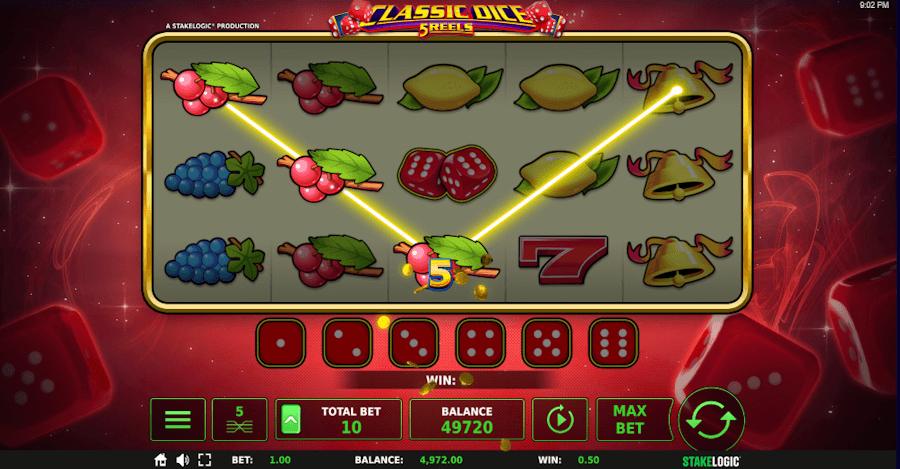 Az elrendezése 5 nyerővonalas, 5 tárcsás és 3 soros. A színes tárcsák tele vannak retro gyümölcs szimbólumokkal, akár egy igazi oldschool félkarú rabló. Emellett a nevéből adódóan a kockák állnak a középpontban. A Classic Dice 5 Reels piros hátteret kapott, és a többi színes alakzatra is öröm ránézni. Az irányítópultunk a megszokott helyen, a kijelző alján helyezkedik el. A Multi Dice játék irányítása pofon egyszerű. A háttérzene kellemesen megadja a hangulatot, de van lehetőségünk kikapcsolni vagy lehalkítani is. A játékhoz nem szükséges Multi Dice nyerőgép letöltés ingyen, a böngészőből kényelmesen használhatjuk számítógépen vagy akár hordozható eszközön is.