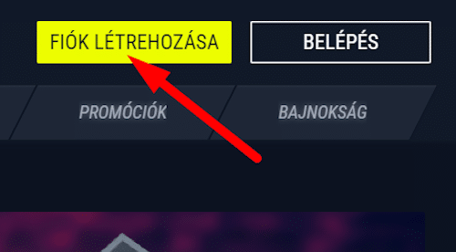 Kattints a weboldal jobb sarkában található ‘fiók létrehozása’ sárga mezőre