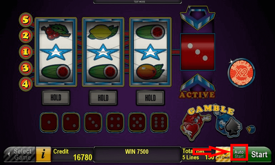 A játék lényege dióhéjban itt is az, hogy 3 azonos szimbólumot üss meg egymás mellett az 5-ös nyerővonalon. Mikor a játékot készülsz elindítani, a következő menüpontok jelennek meg:
