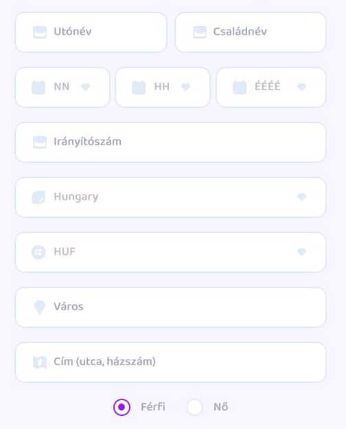 Add meg a teljes nevedet és a születési adataidat a megfelelő mezőkben. Ezek az információk szükségesek a fiók hitelesítéséhez és a személyazonosságod megerősítéséhez.