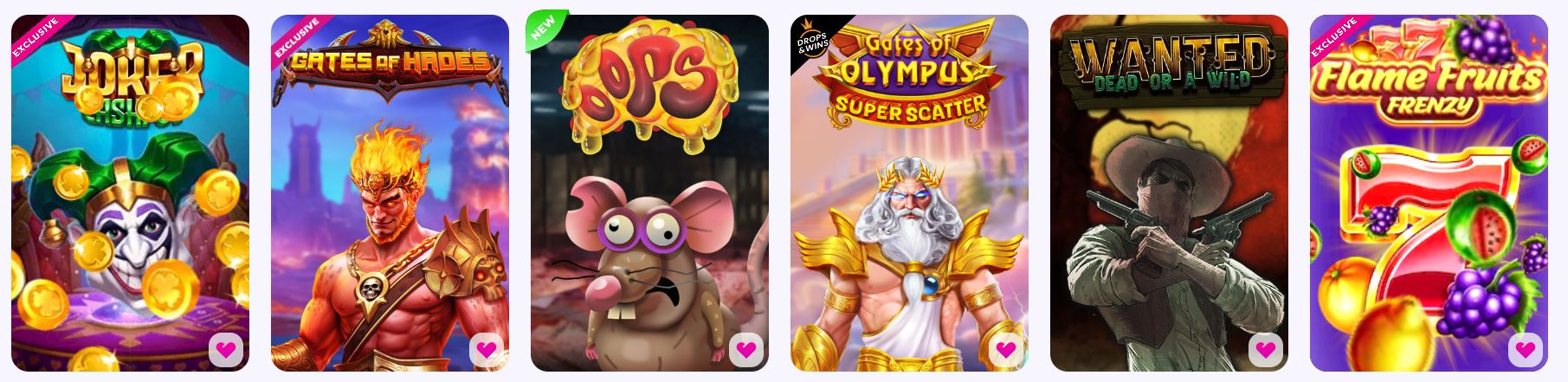 A Jokerstar kínálatában kiemelkedőek a Play’n GO slotok, melyek között a legnépszerűbbek a Book of Dead (egyiptomi kalandokkal), a Fire Joker (újrapörgetésekkel), a Legacy of Dead (misztikus ingyenjátékokkal), a Reactoonz (különleges klaszternyereményekkel) és a Rise of Olympus (isteni erőkkel). Ezek a játékok különleges scatter szimbólumokkal rendelkeznek, amelyek ingyenes pörgetéseket és extra nyerési lehetőségeket aktiválnak.